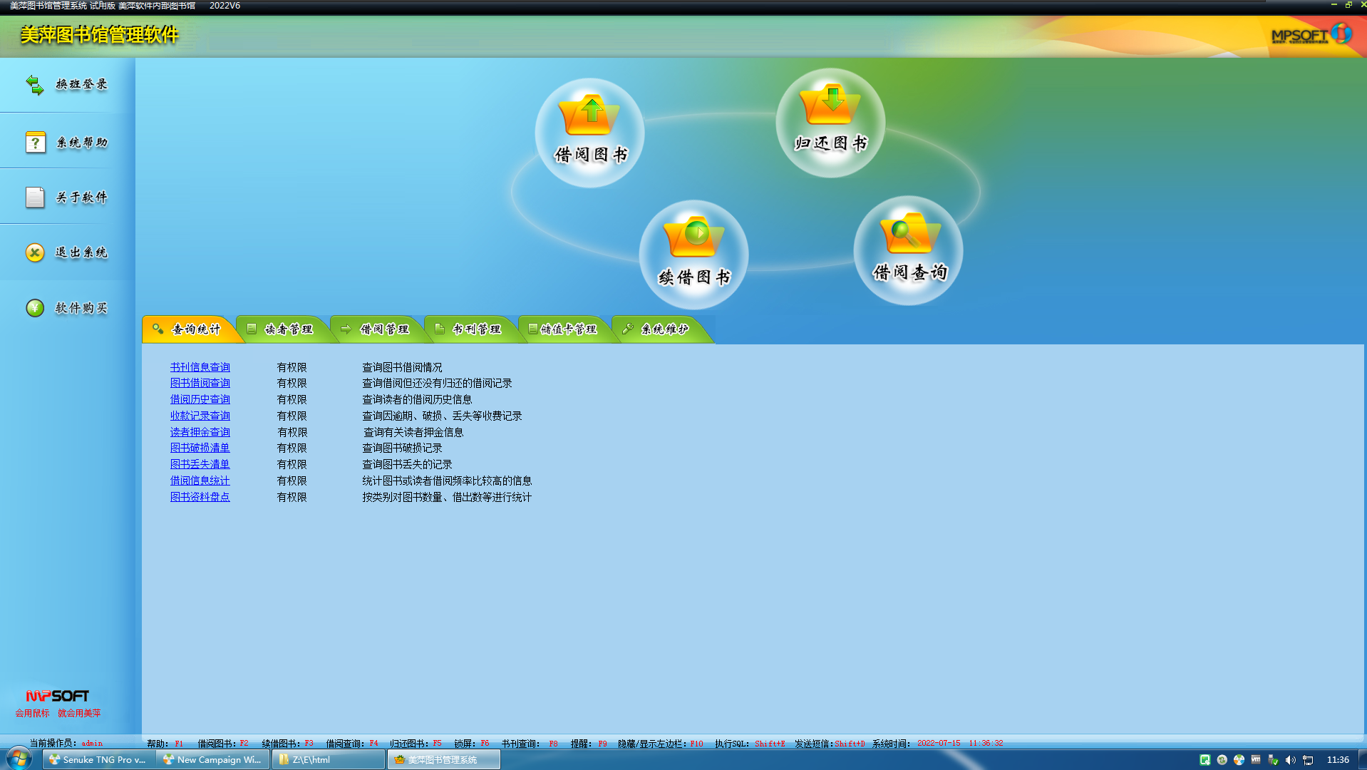美萍图书馆软件,软件得能正常联网。才能正常到云数据库获取数据
